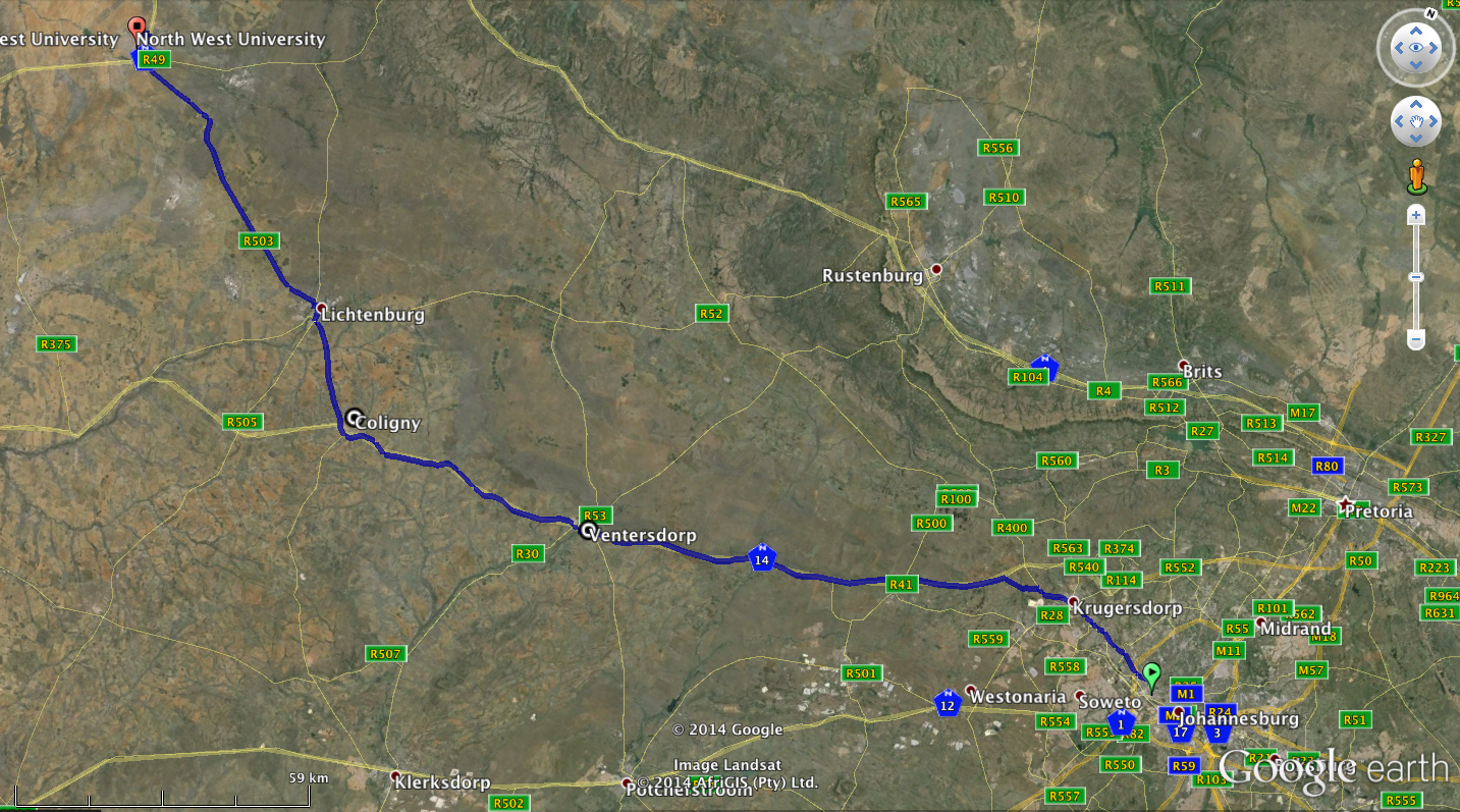 Map from Johannesburg to Mahikeng by car