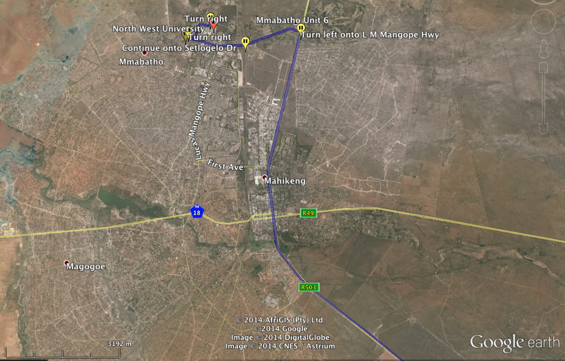 Map as you arrive at Mahikeng